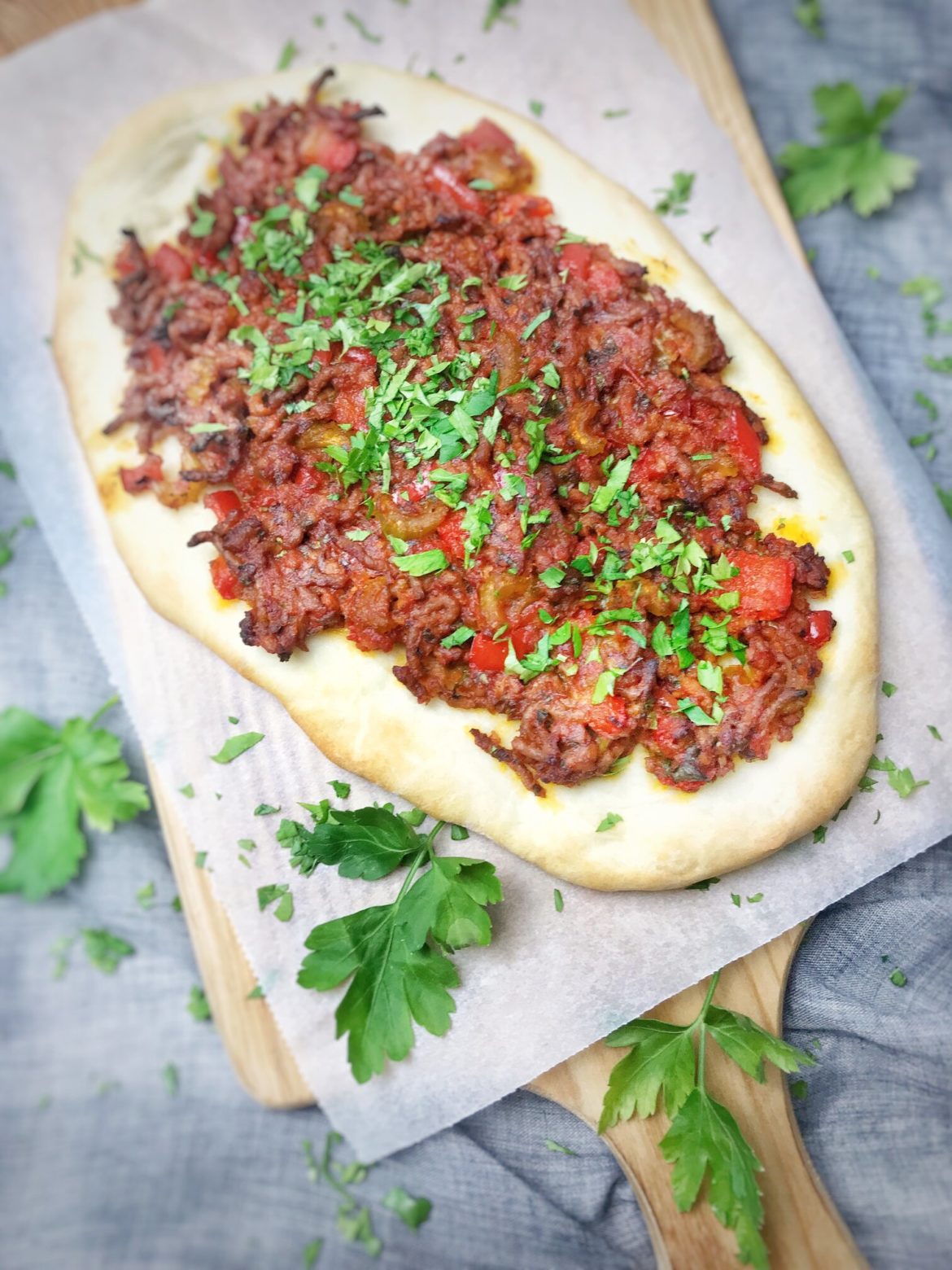 - Die Fladen ca. 12-15 Minuten goldbraun backen. Mit der Petersilie bestreuen und genießen.