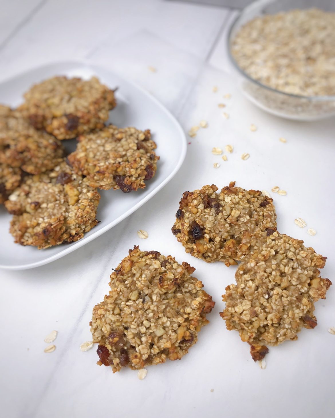 - Mit einem Löffel kleine Häufchen auf ein mit Backpapier ausgelegtes Backblech geben und diese etwas flachdrücken.