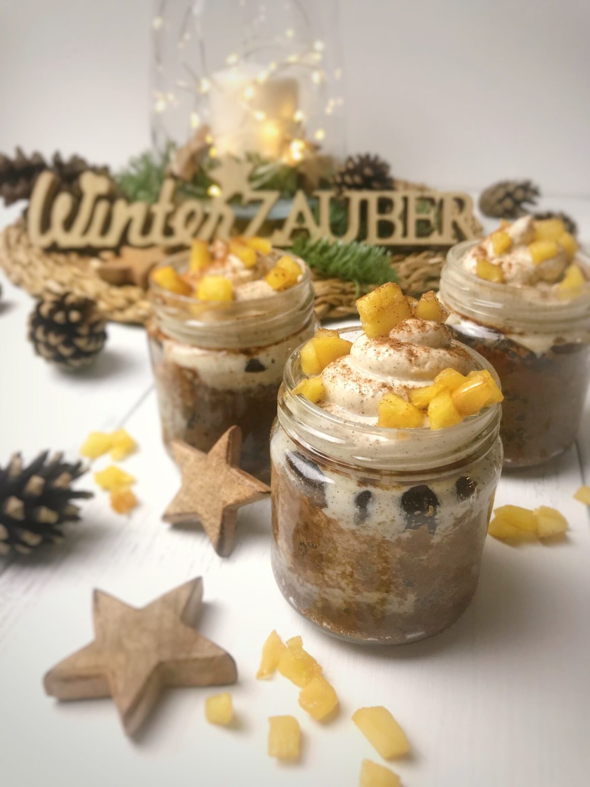 - Die Zimtcreme draufspritzen, die Apfelstücke als Topping draufgeben und genießen!