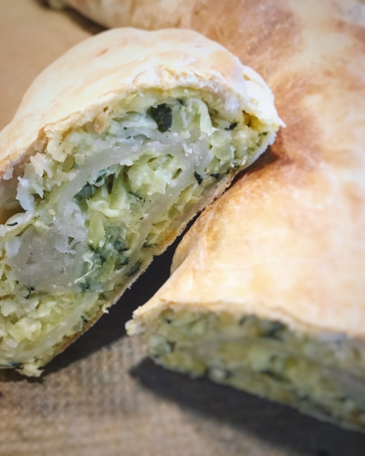 3. In einer Pfanne etwas Öl erhitzen und zuerst die Zwiebel hineingeben und glasig anbraten. Dann Kartoffel und Zucchini dazu und nochmal kurz anbraten. Etwas abkühlen lassen.