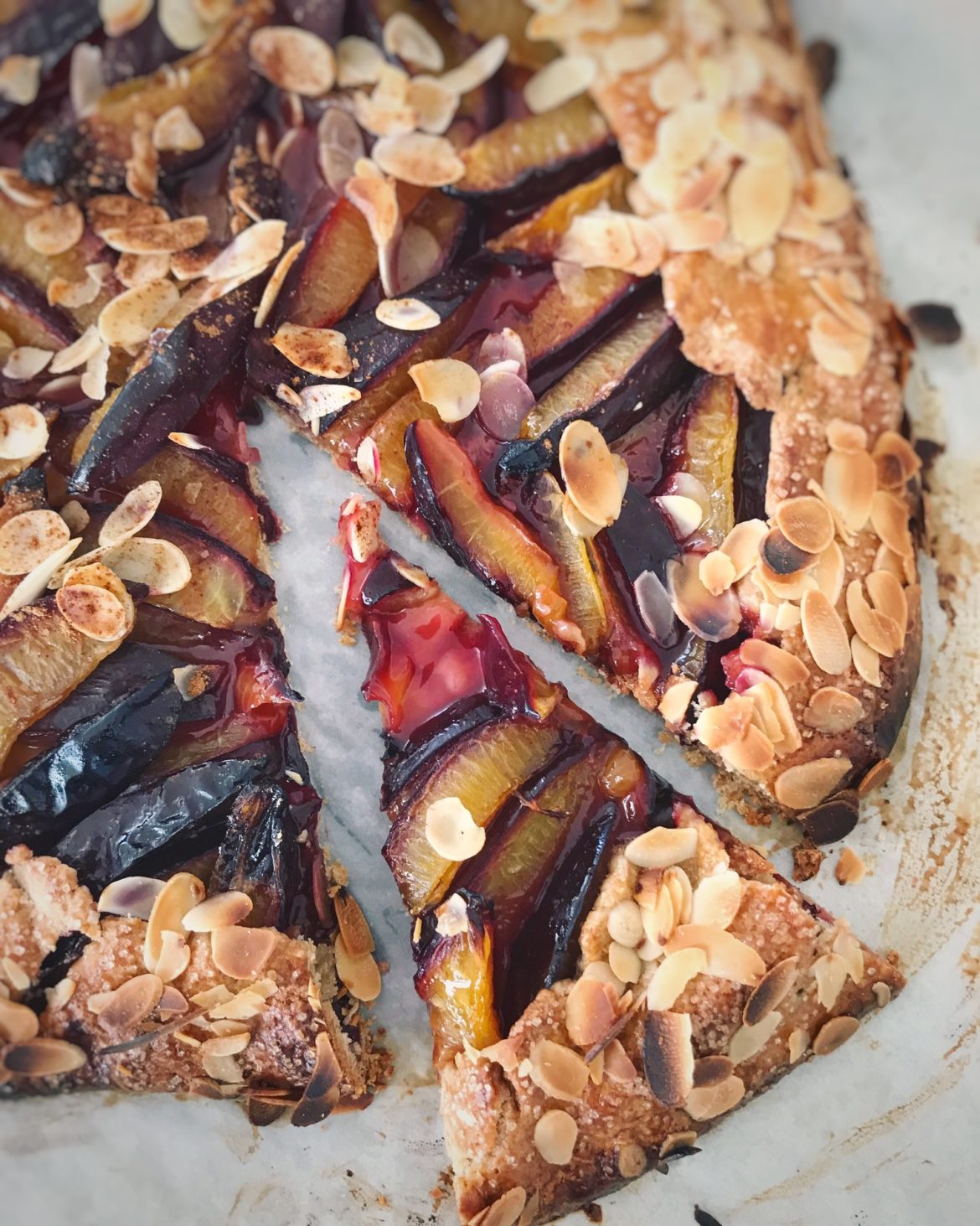 - Zum Schluss auf den Rand den braunen Zucker streuen und die komplette Galette mit den Mandelblättchen bestreuchen.
