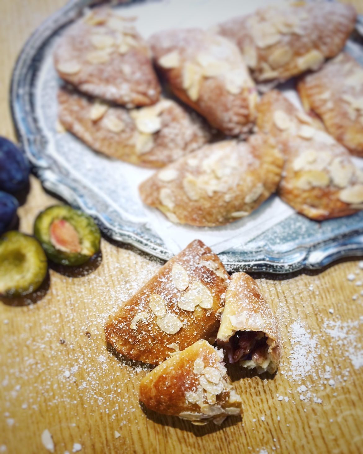 - Die Teigtaschen ca. 12 Minuten backen bis sie goldbraun sind. Noch lauwarm genießen!
